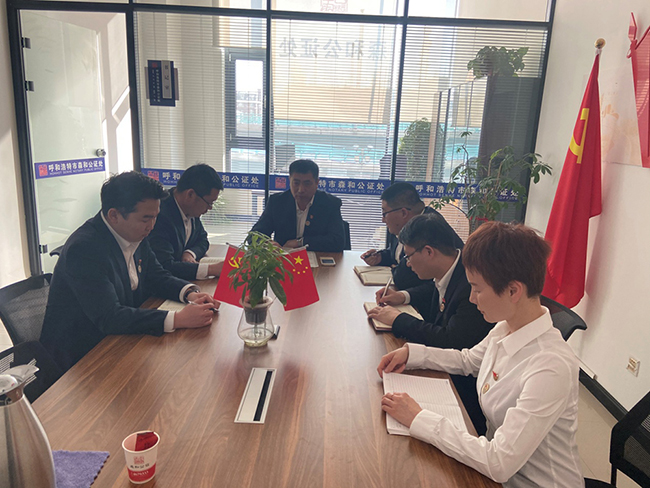 1月19日下午14时,森和公证处党支部组织全体党员集体学习了习近平总书记“不忘初心、牢记使命”主题教育总结大会上的重要讲话精神,森和公证处党支部书记布和主持会议。会议原文传达了《习近平总书记“不忘初心、牢记使命”主题教育总结大会上的讲话》内容,并就总书记在讲话中着重讲的“不忘初心、牢记使命”主题教育取得的6方面成效、6方面经验、6个“必须”等进行了认真的学习和解读。