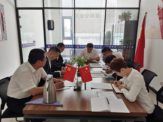 布和强调,全体党员同志要继续加强学习习近平中国特色社会主义思想,跟进学习《民法典》等最新法律法规,学习涉及公证的新知识、新技能,不断提高业务本领,为森和公证处的发展贡献力量。